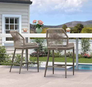 "Detalles Cuerda para uso en todo tipo de clima hecha de mimbre textilene resistente a la intemperie y a los rayos UV, este juego de taburetes es perfecto para uso al aire libre a largo plazo.
